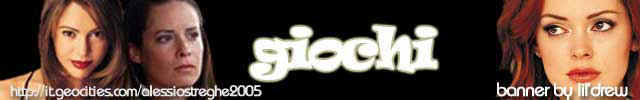 Ecco pronta per voi una bella sezione giochi sul telefilm streghe, alcuni li ho creati io mentre altri sono stati creati dai visitatori del mio sito. Anche voi potete contribuire all'arricchimento di questa sezione inviando test, quiz, rebus, cruciverba ecc ecc alla mia e-mail alessiostreghe2005@yahoo.it . Aspetto vostre e-mail!!!