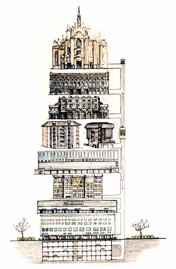 se la città fosse stata costruita come un grattacielo, per tutti gli automobilisti sarebbe naturale lasciare l'automobile nel parcheggio sotterraneo ed andare a teatro, a casa o in ufficio con l'ascensore.poichè... |