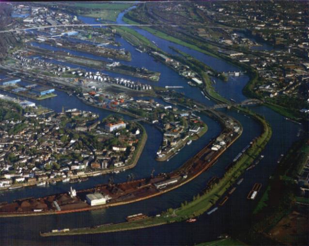 Città della Germania centro occidentale presso Dusseldorf. La città è il più importante porto fluviale dellEuropa situata alla confluenza di due fiumi: il Reno e il Ruhr (suo affluente).