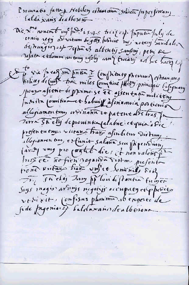 Archivio di Stato di Lucera - Atto redatto da Annibale de Strangis, notaio in Troia, del 10 novembre 1545. Procura fatta dal Nobile Ottaviano Siliceo al sig. Baldaxare di Alberona. Ricerca del documento: Prof. Giovanni Rubino - scrittore e storico della città di Troia. Trascrizione e traduzione : Mons. don Mario Maitilasso e dott.ssa Anna Martino - Biblioteca Diocesana di Troia. |