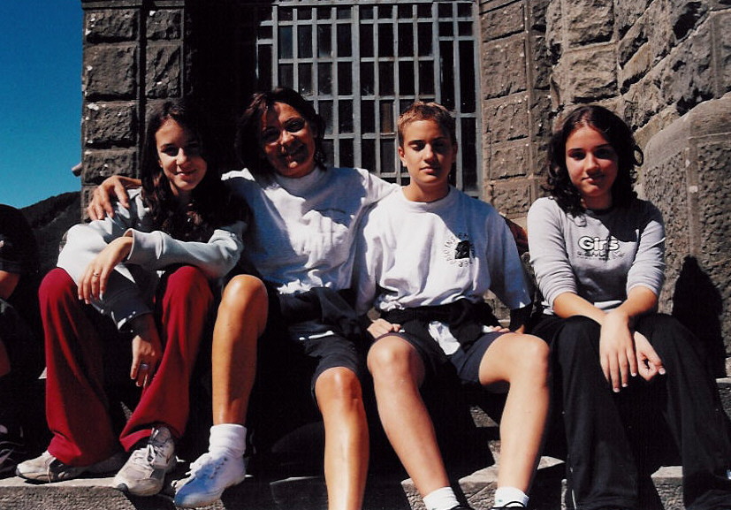 Le "nostre" 4 ragazze: Valentina, la Maria, Elena e Giulia davanti al Santuario sul Passo della Cisa