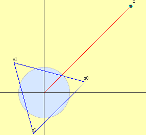 - Se sposti z, il triangolo equilatero ruota intorno all'origine, che è il suo centro e subisce una omotetia di rapporto il modulo di z, |z|. Perché?