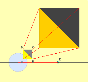 - Per capire come stanno le cose, può essere utile qualche interazione in una applet apposita. Nell'applet si possono spostare il quadrato ABCD e il punto E con il mouse.