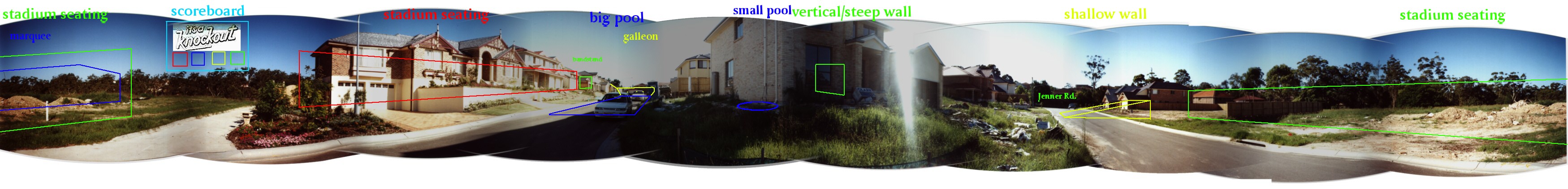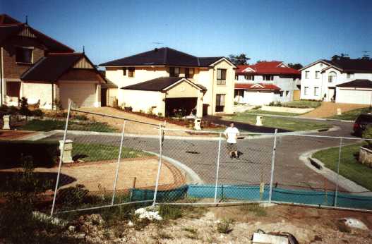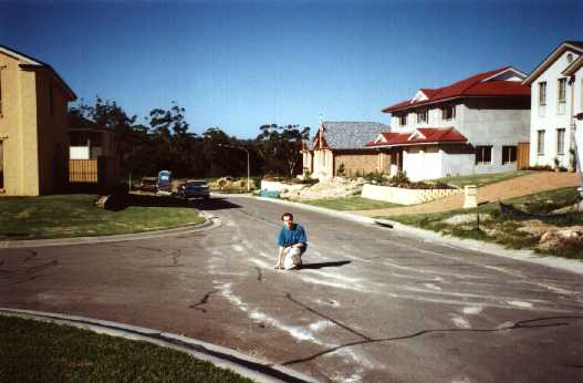 ![]() | Steve stands in small pool, imagining he is competing for Stirling in 'Slideshot', but waiting for 'Mountain Climbing'. This street is officially known as Athella Ave but I hereby dub it 'Knockout Road'. While I'm at it I hereby rename Caber Close (not shown) as 'MacDonald Smith Road'. We were unable to uncover any archaeological evidence of IAK in our superficial digging. |