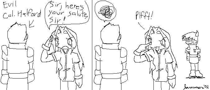Drawn in MSPaint with a mouse. Col. Halford SUCKS! BWAHAHA! Very bad...here's the use of no boxes, just a dividing line.