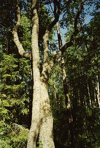 From the clearing you can follow a tiny path towards the shore and come to a dead standing pine tree with magnificent branches. Underneath the tree is a neat pile of stones proving that people still come here to make campfires and listen to the whispering wind. A few weeks ago, I noticed that the path continues on. I followed it to the shore and behind the bushes saw big stones in the water. On one of those stones some one had placed a perfectly oval stone. Or was it an egg? I went closer, and discovered it was a stone, a beautiful piece of art among the rushing waves. Next time I went there the stone was gone, perhaps taken by a passer-by, or simply washed into the water. I took a good look at the old trunk of the dead tree and noticed a carving on it which looked like a keyhole but was in the shape of a cross. So this was a shrine, a meeting place of the ancient and the new, the oval stone symbolizing the old legend of the beginning of the world in which the water bird lay its eggs on Airmaiden's knee as she was floating on the waves; out of those eggs land rose up, trees, plants, animals, and finally humans. And the cross was the symbol of the Christianity that banished the old beliefs. In places like this, now the two worlds mingle in a perfect harmony.