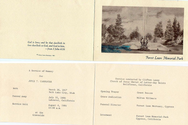 | Joyce's Funeral Card |