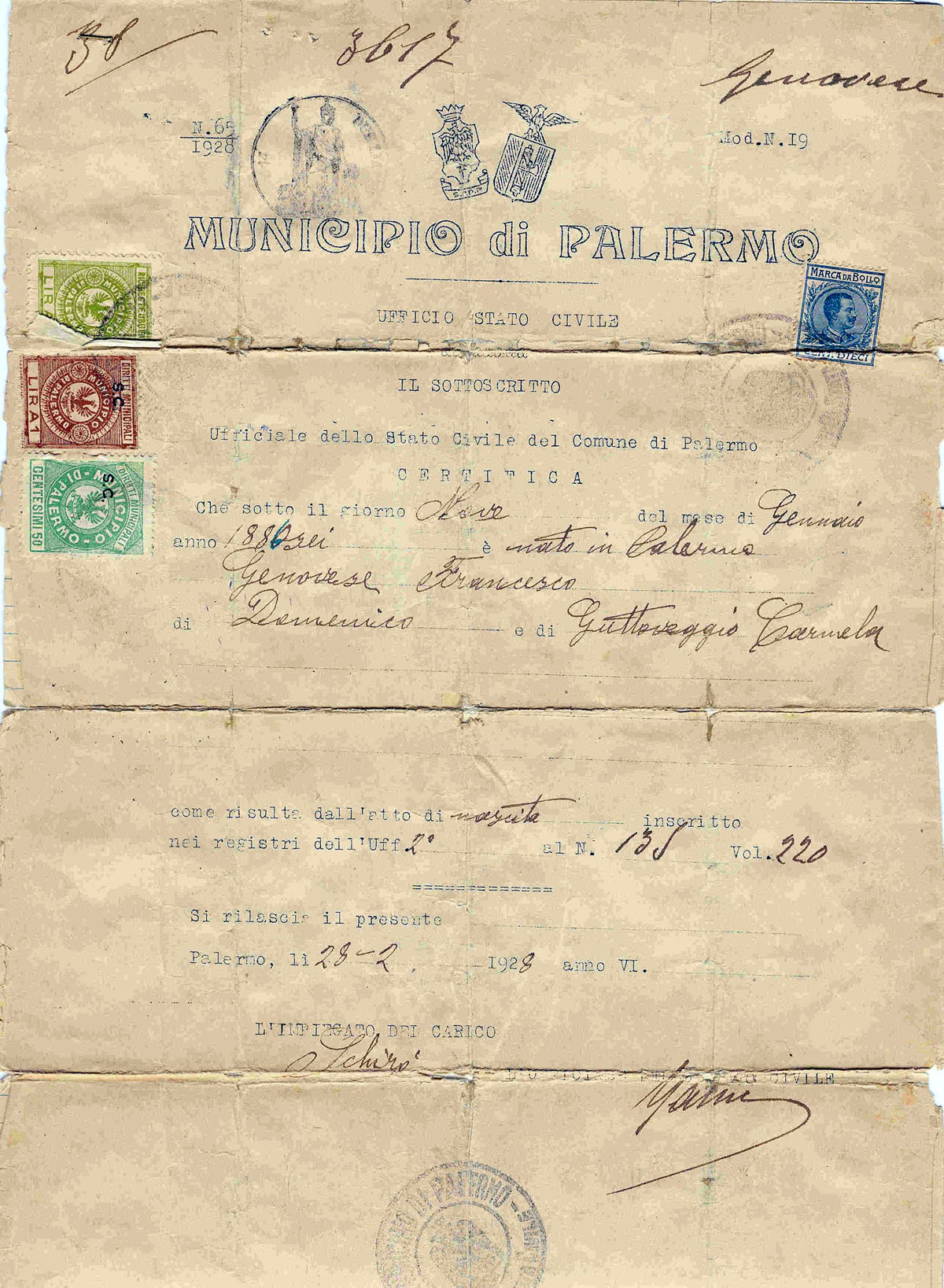 Born (day month year): 9 Jan. 1886 | Place: Palermo, Sicily, Italy |