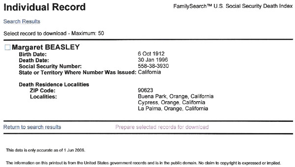Marie Genovese's Funeral Card Margaret Marie Genovese's Social Security Index |