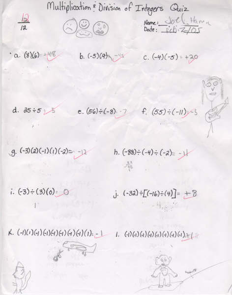 Math Test | A Math Test In Which I Got 12 out of 12. |