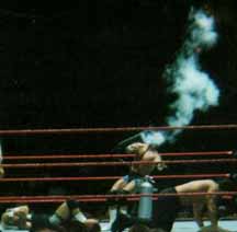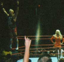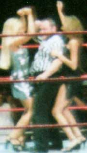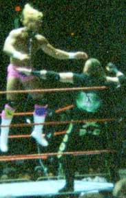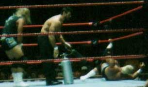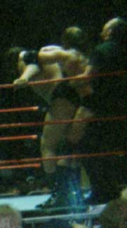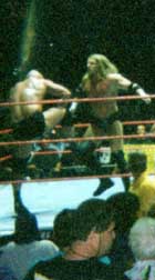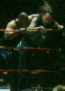Hope you enjoyed our pics from San Jose (7-16-99), Anaheim (7-17-99), and Bakersfield (7-18-99). Sorry they suck. Maybe someday I'll bring a better camera to the shows. Maybe. If you want any of these pics you may snatch them guilt-free. I would like to know if you take them, just drop me a line and let me know you've taken them and if they will be on a site, which site. Also, it would be nice if you credited me. Okay, now get your sweet little tookus back to Our CA Shows or Our WWF Shows or The Unwrapped Undertaker!! |