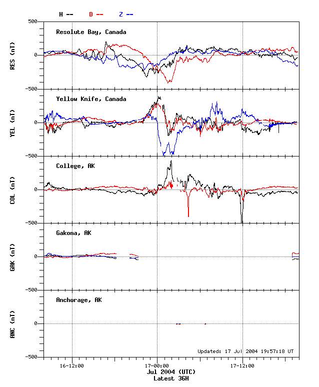 3. The disruption was recorded by a chain of magnometers in northern North America.