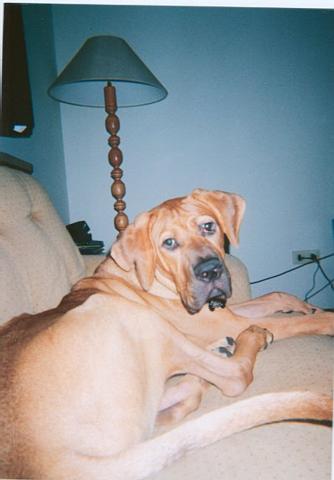 | This page is all about our family dog Lestat.  His breed is Tosa Inu, a japanese sub-breed of the Mastiff.  Over the last 100 years or so they took some of the Americas' large breeds and began cross-breeding, and ended up with what we have here as the final result.  He is very loyal, and quite protective.  Nothing but a big puppy really.