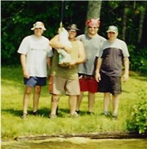 | "But in the end, we had to say 'goodbye'. Even though I didn't want to, I asked the guys if I could get a picture taken with them. Here's the picture of all of us, before the bastards threw me into the lake!" |