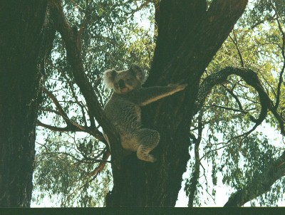 a koala close up on a tree trunk near Siding Spring Observatory.