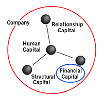 Financial Capital is the best known form of capital, and is what most people regard as capital. It is the basis for valuation by all fundamentalists. It consists of Investment Capital (Long term funds) and floating or Working capital (short-term funds). Financial Capital comes in many forms: stock certificates, notes, debt, options and many other financial instruments including cash. Even though these forms of financial capital still form the basis of the valuation of a company or organisation, traditional balance sheets are no longer the only source of information to determine a company's true value. Example: The following example illustrates how knowledge can be turned into financial capital. When the Dutch aircraft manufacturer Fokker was in financial difficulties, it worked out a (controversial) technolease structure with its bank. The company sold its patent rights on core technologies to the bank and then leased them back. By doing so, Fokker could immediately cash in on knowledge owned by the company and put the cost of owning that knowledge (lease) on the balance-sheet. Knowledge was effectively turned into financial capital. As a side note: It is amazing how companies, especially publicly traded ones, spend billions on aggregating their financial data into statements, such as quarterly and annual reports for shareholders, only to have financial analysts immediately try to extract and dissect that information into knowledge that is pertinent to their analysis of the company. The future of networking, investor demand and government mandate could provide a world where registered investors and analysts could connect directly into an organization's General Ledger system that would be providing real-time information. It is doubtful this will take place in the near future, but the concept is certainly thought provoking. | |