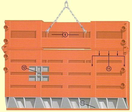 | 9. Lifting Lugs Recessed into each shield Perfectly positioned EASY HANDLING 10. Stacking Connection inside the shield Safe, EASY CONNECTION Plates pivot 11. Pounding Area Thick Steel on top of vertical members Reinforced to horizontal member Force transferred to bottom |