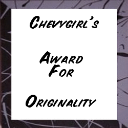 E-mail me, using the form below if you wish, with the name of your site, the url for your site, and state (in the first line) which award you are applying for. These are not the actual sizes of the awards. You may resize them to suite your taste. All I ask in return is a link back to this site. Please allow one week for a response. Thanks.