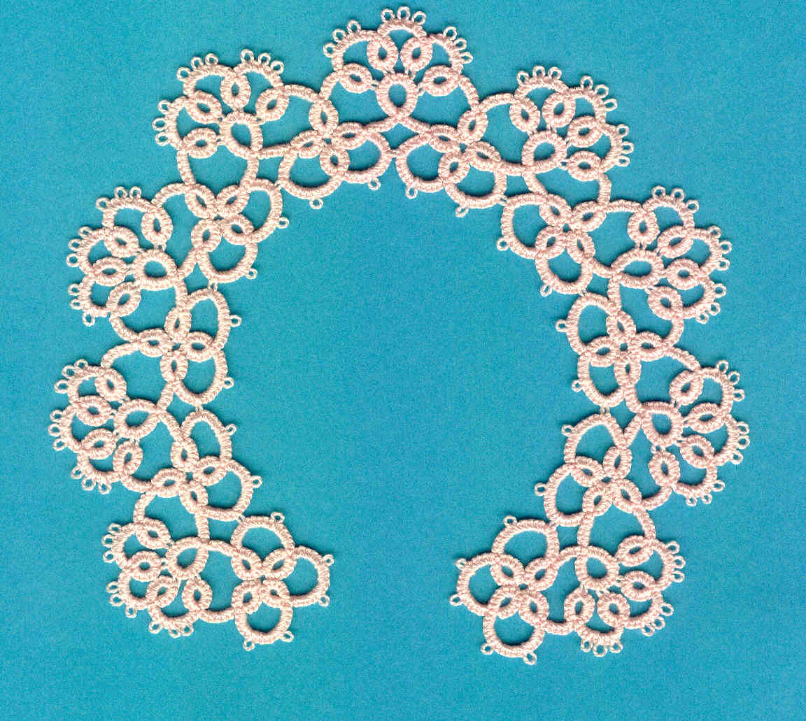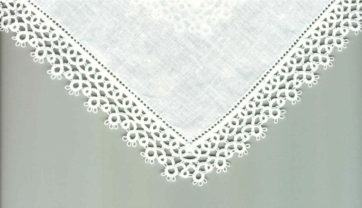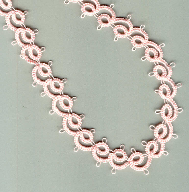 | This curved edging is from Needle Tatting With Style, Book 1 by Barbara Foster. I entered this in the 1998 county fair and got a blue ribbon. |