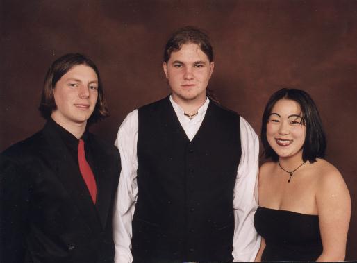 | Holy crap i do look like my sister. well i guess thats not a bad thing. i like this photo slightly this was my end of year senior dinner. the guy on the right is damien wischnat hes a dude the other one is skye bailey hehehe shes really awsome and is nathan wischnats girl friend i want her to play bass for me but she wont. by the way im totally wasted piss outa my brain. I HATE THE LONG HAIR!!!!! | ||||||||||||||||||||||