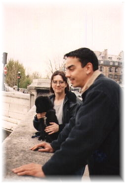 Filou: Mein Name ist Filou und ich bin ein Bordercollie-Mischling. Ich wurde am 30.1.98 in Frankreich geboren. Mama und Papa haben mich bei ihrem Urlaub in Paris in einem Tiergeschäft gesehen. Für alle drei war es Liebe auf den ersten Blick. Leider sind sie ohne mich wieder nach Deutschland gefahren. Aber eine Woche später waren sie plötzlich wieder da und haben mich gekauft. Ich war damals 11 Wochen alt und so klein, daß ich mit einem Katzengeschirr mein erstes Gassi machte. Alle Leute in Paris waren begeistert von mir- ich sah nämlich aus wie ein kleiner Bär. Oma und Opa lieben mich auch sehr seit sie mich das erste Mal gesehen haben. Mama und Papa hab´ ich gut im Griff. Ich weiß zwar nicht, was das heißt, aber alle sagen immer, daß ich verwöhnt sei. Ich bin ein gaaanz lieber Hund, ich hab´nur ein Problem: Rüden. Die mag ich gar nicht. Mama und Papa ziehen immer an der Leine und schimpfen mit mir wenn ich belle, aber ich mach mir nix daraus. Ich wohne ziemlich nah am Rhein und ich gehe sehr gerne schwimmen. Ich kann sogar tauchen. Ich schwimme auf den Grund und hole Steine hoch. Tagsüber bin ich mit Pixi und Simon alleine, weil Mama und Papa arbeiten gehen. Dann leg´ ich mich auf die Couch und träume von Hundemädchen. Im Sommer werde ich immer ausgelacht weil ich vor Fliegen und Mücken Angst habe. Wenn die um mich herum fliegen, krieg´ isch Plack. Ich renne dann weg und versteck´mich. Ansonsten geht´s mir richtig gut und ich bin Mama und Papa heute noch dankbar, daß sie mich aus dem engen Käfig im Pariser Tiergeschäft befreit haben. Salut, Euer Filou | |