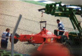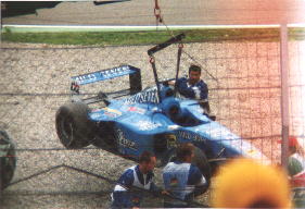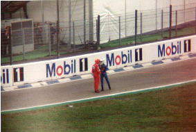 Dieses Jahr waren wir auch wieder zu dritt beim Rennen. Allerdings hat diesmal alles besser geklappt als letztes Jahr. Wir waren Donnerstag am Flughafen und haben ein paar Fahrer und Teamchefs gesehen: Pedro Diniz, Jean Alesi, Flavio Brigatore, Frank Williams, Jacques Villeneuve und Craig Pollock. Samstag am Hotel haben wir Jenson Button und Michael Schumacher gesehen. Und am Sonntag hat Norbert Haug Tina beinahe über den Haufen gefahren mit seinem Motorroller *g* Beim Rennen am Sonntag waren Schumi und Fisichella so nett, direkt vor unserer Nase auszufallen. Nach dem Rennen wurden sogar die Tore geöffnet und wir konnten auf die Strecke. | |