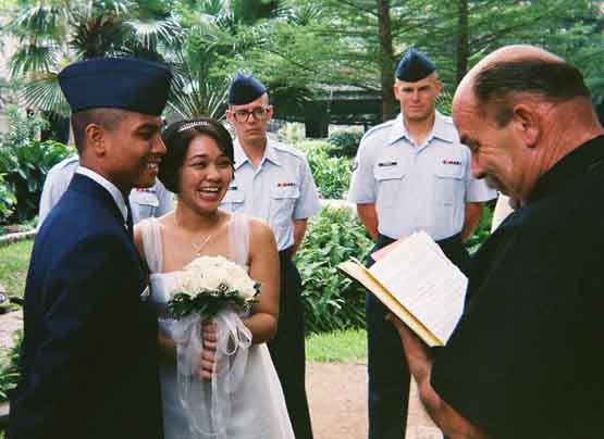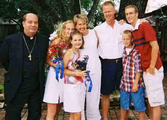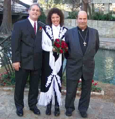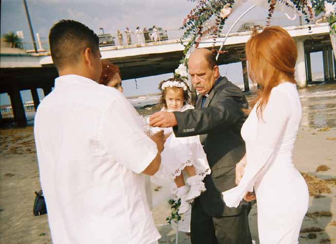 below to review the service outline.  B. Renewal of Marriage and Wedding Vows: Celebrate your anniversary with a complete ceremony to renew your marriage vows. We treat this as a wedding. The words just a little different, but the spirit of unity and uniting as one in life and forever is very apparent. This day and celebration should be just as important as your wedding day. Click below to review the service outline.  A joint renewal of the grandparents marriage vows, and baptism of their grandchild Janilee was officiated by Reverend Bernhardt on the Beach at the Flagship Hotel in Galveston on July 07, 2005. Congratulations to the Martinez-Gomez Family, and especially to the parents of Janilee, who was Baptized that day!C. Baptism of Infants and children: Officiated and performed in the Catholic, Episcopal, Lutheran, or Anglican protestent traditions. A complete service including communion is available at your location. There is no age limit on the baptism of children. Any child is eligible that has never been baptized. Dedication ceremonies also available. Click below to review the service outline. D. Quinceanera Celebrations & Masses: The celebration of a child becoming a woman. This is a very important time when the child's family shows her love, respect, and honors her on a very special day. The Quinceanera may be performed in the Catholic Tradition or as a nondenominational celebration. We celebrate at your location. Click below for additional details. E.Church & Chapel Weddings: Several Churches and Chapels are available FOR RENT if you desire a church wedding. One of the oldest Catholic Churches in Texas is available for rent in Galveston for YOUR Church Wedding! Call 832-549-4696. You may arrange any church rental and we will behappy to officiate. |