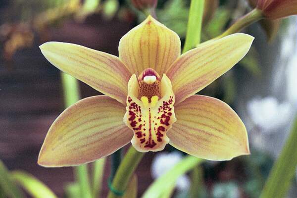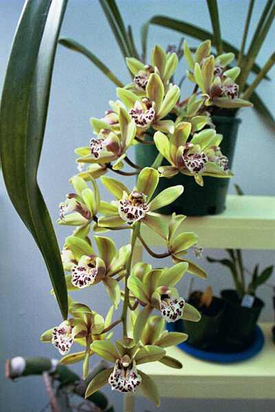 These orchids are prized for their sprays of large & long last flowers, used especially as cut flowers or for corsages. There are two main types of cymbidiums the standards and miniatures. Some have upright stems while others droop gracefully. LIGHT Cymbidiums come from cool but bright areas in Asia, so in culture they require high levels of light but cool temperatures. Generally in our climate, high level of light are accompanied by the high temperatures of summer, which can be detrimental to the plants flowering potential. During the summer your plants should get the morning light direct but be lightly shaded from the burning rays of the midday & afternoon sun. A spray of water on a hot day will help cool your plants, but they will burn if sprayed while the sun is on them, so ensure that they are shaded before wetting. At this time of the year plants will need plenty of good ventilation. During the winter months cymbids can take direct light, but want to be sheltered from frosts & rain. Leaves should be a medium to golden green in color, not dark green. TEMPERATURE During the summer months cymbidiums can be grown outside in semi-shade quite happily, as long as they are not taking a lot of burning heat & are getting a regular spray of water. As the winter approaches it is best to put your cymbids under shelter. They are quite hardy & will withstand temperatures down to frost level as long as the frosts are not allowed to settle on them. A shelter also protects them from the winter rains. Temperature is a critical factor in the blooming of cymbidiums. During February-March the night time temperature can drop a good 10oC or more from that of the heat of the day, & it is this vast change in temperatures that initiates the flower spikes. If the night looks like being warm & humid a spray over the plants of cold water in the evening can be an advantage. A bright and cool location inside is best for winter months. Don’t take cymbids that are in spike into your living quarters, the warmth will cause the buds to die off & drop ruining a whole seasons flowering for that plant. WATER Cymbidiums being semi-terrestrial like a fairly constant supply of moisture. As all of their vegetative growth occurs during the spring and summer months, they need the most water during that period, naturally. Water heavily during the growth season, keeping the potting medium from drying out completely, and reduce water when the pseudobulbs are completed in late summer. Keep barely moist during the winter. Too wet during the colder month will cause rot to set into the roots. HUMIDITY During the summer month humidity from your frequent waterings is generally sufficient as long as there is good air movement available to the plants. Winter humidity is higher naturally & this will mean that water is required less often. Keep up good ventilation as the air movement helps to prevent fungus (Botrytis) from spotting the flowers or even rotting off the spikes. FERTILISING During the plants growth season, spring through into the late summer, a high-nitrogen fertiliser is best used & can be fed at every second or third watering. From late summer, use a high-phosphorus, bloom-boosting fertiliser such as “Phostrogen” to help form the flower spikes. During the winter months only fertilise about once a month. REPOTTING This can be carried out as the plant finishes flowering, & is usually done every couple of years or sooner if you notice the potting medium breaking down. Shake all the old potting mix off the roots, & at this stage divide the plant if desired. Divisions of green bulbs with leaves must have 3 or 4 bulbs minimum to flower, bulbs without leaves are considered backbulbs, these may be left on the division to add strength, or removed for propagation. Your potting mix, usually medium to coarse pine bark, should hold moisture well. It is best to soak the bark for a few days prior to repotting to allow it to take up moisture, this means the plant has moisture readily available at the roots & a dry mix only allows the water to run straight through, not retaining any for the plant. Select a pot that will allow for at least 2 to 3 years of pseudobulb growth before crowding the pot. Place the active growing bulbs of the division farthest from the side of the pot, spreading the roots over a cone of the mix in the bottom of the pot, and then fill the pot with the media, working it among the roots, by gently tapping the pot. The plant should be firm in the pot when you are finished. The junction of roots and pseudobulbs should be about 15 to 25 mm below the top of the mix. Keep shaded & humid, & water sparingly until the roots have time to heal & start to grow, usually about 4 weeks. The backbulbs that you removed can be buried about half their depth in a fine bark or peat/sand mix. Keep shaded, warm & damp until new growth sprouts away, sometimes this may take several months, then pot as above. It may take three or more years to produce a flowering-size plant from this method, but it is worth doing. |
