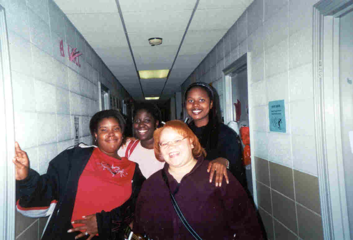 | our wonderful hallway-Jenna, Claudia, me, and Njabu |