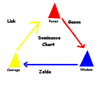 Ganon always gets a piece (or pieces) of the Triforce. So why does Link always win. Ganon never actually USES the full Triforce against Link? Link does! Link’s bloodline has the essence of the Triforce of Courage running through it! But wait, you say, Ganon must have Power then! True. But for the Triforce to be balanced and fit into the storyline, Courage must be more powerful than Power. Look! (Arrows point to the part that that part dominates.) ![]() Courage beats power. (Link all but one time beats Ganon) J Power beats Wisdom. (Ganon always kidnaps Zelda) Wisdom beats Courage. (Zelda sets most of the tasks for Link, and he has to do them) If all three physical Triforces were possessed by their Keepers, and united while they were at peace, THEN the Triforce would be at its most powerful. See you on the meep side, Porky |