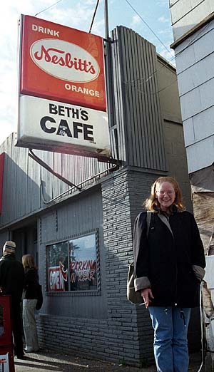 Amy takes a quick smoke after breakfast at Beth's