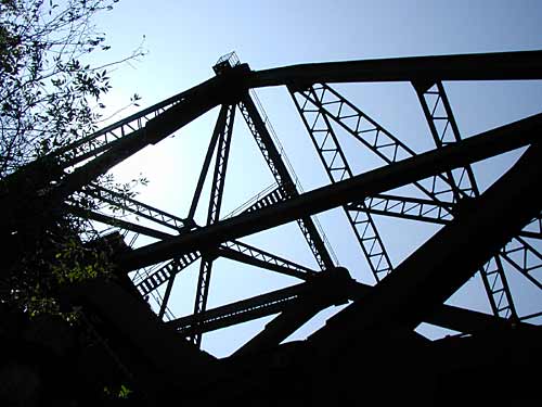 This stretch of the river is overlaid by a fascinating network of bridges. Auto bridges, railroad bridges cross at every different angle, while the river wanders gently back and forth under the city grid above.