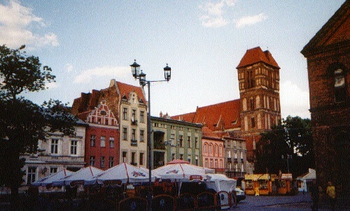 14.18 Efter en bussresa från järnvägsstationen som gick via en bro över Wisla så sitter vi och samlar kraft på en bänk nära Toruns gamla stad. Snart bär det av mot turistinformationen för att där förhoppningsvis fixa ett rum för natten.