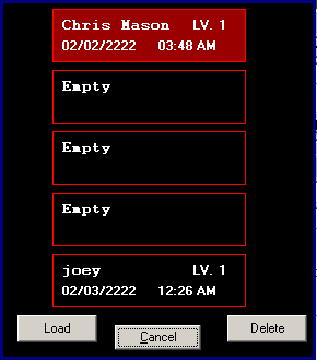 OLD VERSION Screenshots: Menus 1, Menus 2, Start Screen (First screen), Load Screen, Start New Game screen, One of the more impressive game screens (Main Character shown).