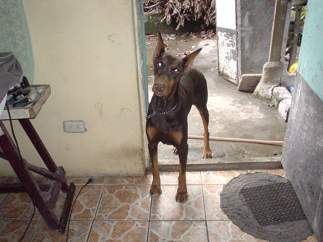 This is the most bizarre temperament I had ever witness in a Doberman pincher. She is a Labrador retriever trapped in a dobbie body! Meca is newly adapted in the family, but everyone seems too close to her. She like's to please us every time she had the opportunity. At present, she is pregnant and may gave birth within a week or two. |