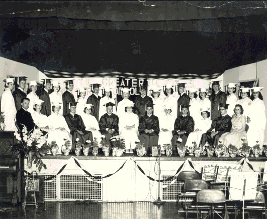 | THE CLASS OF 1955 Seated left to right - J. Lee Owens, Superintendent, Thelma Jo Hutchison, Nettie Borders, David Lee, Mary Irene Strait, Jack Borders, Carolyn Fields, Jack Cantrell, Rita Foster, Ronald Eikelman, Dolores McQueary, Bill Coates, Katie Rowe, Sponsor Standing left to right - Dorothy Downing, Hughie Cochran, Lurena Kay Neal, Fred Stultz, Nancy Wooten, Max Griffith, Sherry Grady, Mike Nadzieka, Ruth McBride, JoBelle McPhail, Ronald Pershing, Janice Borders, Mary Jo Porter, Allen Rhoderick, Dian Burke, Doris Marshall, Bill Ringo, Janice Ketchem, Shirley Harris, Ada Markle |