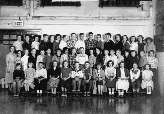 | SIXTH GRADE 1st Row - Ronald Kneeland, Joe Simpson, Jerry Haseman 2nd Row - Con Passen, Jim Mowery, Jim Bruce, Jerry Hallett, Melvin Condor, Jerry Burger, Jimmy Hoole (against wall) 3rd Row - Teacher, Margaret Wasnidge, unknown, Pat Myers, Mary Lou Woolsey, Jan Taylor, Dick Burcham 4th Row - Janice Borders, Larry Fougerousse, Ronald Price, Kenny Quick, Janet Payne, Patsy Marshall 5th Row - Nettie Borders, Carolyn Fields, Mary Irene Strait, Mary Margaret Wasnidge, Frances Puckett, David Lee Back Row - Michael Nadzieka, Max Griffith, Hughie Cochran, Betty Rine, Janice Ketchem, Margie Borders |
