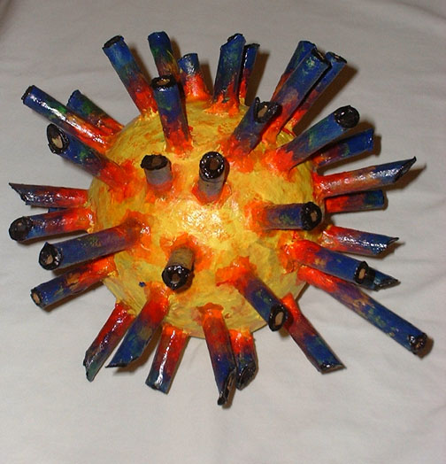 Spikey Headball -- acryllic over paper mache/coat hanger tubes