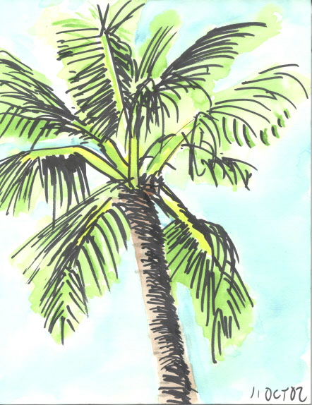 Pen and ink, with watercolor.