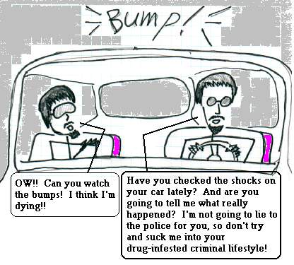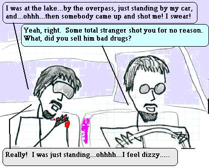 Now, don't get me wrong, Clag is a great guy, and we've been friends since junior high school. And I got this whole story from Clag himself, so I'm just telling, more or less accurately, what he told me. I just can't help but laugh when I think of Clag wanting to use Kris's car to avoid the blood stains! Really, I admire his clear-headed thinking, and I would have panicked like a headless chicken, but Clag's utter calm is just so hilarious!