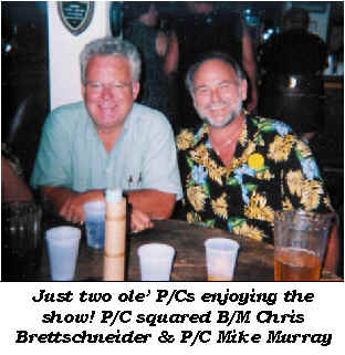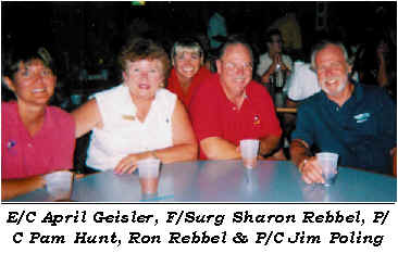 Change Of Watch C hange of Watch is scheduled for the third Friday in October, October 18. Please plan to attend and welcome our new officers to their assigned duties.Dinner will be served and the menu is as follows: CHOICE of Flounder Almondine OR Stuffed Pork Chop with Wild Rice Tossed salad Chef's vegetable Rolls/butter Chef's choice Dessert Please contact E/C April Geisler via email at k-a-geisler@worldnet.att.net to reserve your place. All reservations must be made no later than Monday October 14, 2002. Please note that this is a change from our previous requirements. This year, we need to advise Sparrows Point of our final dinner numbers no later than Tuesday so we need you to call by Monday. Please be prompt. - E/C April Geisler Commodore Ball The Commodore Ball will be held on November 2, 2002 at Martin’s Eastwind at 7:00 PM. The Ball is a celebration to welcome in the new Officers and Board for 2003. The price for the Ball is $60/pp and includes dinner, open bar & dancing for the evening. We hope that you will join us in this most festive occasion. If you are interested in attending, please contact P/C Betty Stahler via email on stahlerb@aol.com. The nominations for Officers for the 2003 Cruising Season are listed on Page 7 of this publication. - V/C Donald Antos The Choking Gourmet B etty and I have just returned from our boat trip to Philadelphia where we attended the Delaware River Yachtsmans League’s Queen Pageant.Attending by car was our very own P/C-V/C Donald Antos, Commodore of CBYCA Joe Hellner, Vice Commodore Ken Bean, Rear Commodore Betty Stahler their mates, and Queen of the Chesapeake Bridget Smith. If you want to see photo’s of the new Queen and the runners up please log on the CBYCA web site http://www.cbyca.org. The new Queen is from Riverside Yacht Club (of Pennsylvania) and her name is Casey Natrin. We were invited to stay while in Philadelphia at Harbor Light Yacht Club in Essington. The owner and Commodore Butch Gricco, would not take a penny for our dockage, electric or cable hook-up. They even took us out for supper and had a couple of cook outs for us, they even left us their “Caddy” should we need transportation. I must say that the Chesapeake yachting community could learn a lot about hospitality from the Pennsylvania clubs, and in particular from Butch & Barbara Gricco, their daughter Barbara (Past Queen) and son Joey. On our return trip from Philadelphia we stopped at Chesapeake Inn on the south side of the C&D Canal. After docking and cleaning up we decided to visit a couple of watering holes in beautiful down town Chesapeake City. By chance we came upon a very nice little place called “The Yacht Club Restaurant.” With a name like that we had to go in. We were greeted by the owner, bartender and chef Gary Klunk and were introduced to his partner Cherri Wilson. Betty & I ordered our favorite drinks and Gary was not at all skimpy. While having our drinks we scanned the menu and found an 8 oz. filet topped with lump crab meat, veggies and garlic mashed potatoes. The beef was cooked the way I ordered it as was Betty’s. I cannot remember having a better filet. Our waitress Roxanne was very prompt & friendly. I wish the Yacht Club Restaurant was a little closer. * * * * * * * * * The priest stood at the church door greeting the parishioners after mass. “Good Morning Mrs. O’Riley, I married you ten years ago, I never see any of your children in church.” “Deed you did marry us Father, we’ve not been blessed with children. My husband and I have tried to have a baby but have not been successful,” said Mrs. O’Riley. “I’m going to Rome for a few years sabbatical”, said the priest, “I’ll light a candle for you in the great cathedral at the Vatican. Perhaps the Holy Mother will look kindly on you and your husband.” Several years later, back at the church door, greeting parishioners, the priest meets Mrs. O’Riley. “Mrs. O’Riley, did you ever have any children?” “Deed I did Father,” she said, pointing to the family behind her. “We’ve had a set of triplets, a set of twins, and two singles since we last saw you!” “Praise be the Holy Mother. She truly blessed you. But I don’t see Mr. O’Riley , is he here?” “No. He’s gone to Rome to blow out your candle!” - B/M Al Freedman Birthdays & AnniversariesBirthdays 09/18—Wilma Hartman 09/21—P/C Bob Grepps 09/22—P/C Jim Poling 09/23—Mary Milner 09/27—P/C Brian Hunt 09/27—Leonard Zullo 09/28—Marie Frizzell 09/30—Judy Chalk 10/06—P/C Nick Stephen 10/06—Nina Price 10/07—Beverly Madden 10/09—Siegfried Gerstung 10/09—Bud Meyers 10/11—Martha Sulcer 10/11—Carlton Chenoweth Anniversaries 09/29—Jim & Lea Carr 10/06—P/C George & Ann Rosch