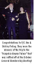 Birthdays & Anniversaries Birthdays 11/16—Virginia Jackson 11/17—P/C Bill Greaver 11/20—Treasurer Pat Alpaugh 12/03—Adele Bruette 12/03—Cheryl Lindgren 12/05—Penny Mattingley 12/06—Kent Alpaugh Anniversaries 11/26—F/Surg Sharon & Ron Rebbel 12/04—Siegfried & Sandi Gerstung Christmas Party Please be sure to mark your calendars for the Annual Christmas Party to be held on Friday, December 20 at Sparrows Point Country Club! A festive time is sure to be had by all. There will be the opportunity for a gift and card exchange. Anyone who brings a gift will be eligible to receive a gift! Please keep the gift range in a reasonable amount, we aren't expecting to get the keys to that new boat! For those of you who have not been to our Christmas Party in the past, the gifts range from small items of giftware, to boat accessories, to a popular liquor or wine, and there is even usually a whimsical item. You are sure to go home with a special memory from the evening. And, you never know, we may be able to get a visit from the Maryland Cruisettes! Don't forget - all dinner reservations must be called in to the Events Chairperson no later than the Monday before the Meeting. Dinner will be: Roast Beef or Roast Turkey Mashed Potatoes and gravy House Salad Chef's vegetable Rolls and butter Coffee and tea Viennese table of desserts. Christmas cookies and mini pastries - IP/C Angela Krzystan Member Appreciation Party The Member Appreciation Party (previously known as the “Officer’s Cocktail Party”) is scheduled for our January meeting to be held on Friday, January 17, 2003. This event is to toast the members of MCC and thank them for all of their continued support of the club throughout the year. Special treats for the evening are donated by the Officers and Board Members. Please plan on joining us for our annual Member Appreciation party to be held at Sparrows Point during the normal dinner meeting. Details on the menu will be posted in the December Scuttlebutt! Commodore Ball The 2002 MCC Commodore Ball is scheduled for Saturday, November 2, 2002 at Martins Eastwind. The Ball is to honor the incoming Commodore and the new Officers and Board Members for the 2003 Cruising Season. There is dancing, open bar, dinner and music all evening. After a short ceremony to introduce the visiting officers as well as our new officers, the evening is spent visiting with friends who have joined us from around the Bay. Pictures of this gala event will be available in the next issue of the Scuttlebutt! Fleet Review This year our Frost Bite - Fleet review in honor of Commodore Krzystan was held at the Red Eye Yacht Club. We cruised in Saturday afternoon in time to enjoy a couple of adult beverages and a few goodies on the porch at the club. Saturday evening we descended upon the clubhouse for dinner and a couple hours of fun and laughter. In the latter part of the evening the DJ fired up his music box and we had some cheek-to-cheek dancing. On Sunday morning, the crew was treated to breakfast in the clubhouse, compliments of the Commodore and her V/C. In the late morning, we did a Fleet Review for the Commodore on Sue Creek in front of the REYC. All in all, it was a very nice weekend. REYC could not have been nicer. They gave us full use of their facility. Hats off to the committee who saw to the details. Angela served in all four offices from Fleet Captain to Commodore. That represents a lot of time and effort on behalf of MCC. I know the experience has left her with a lot of fond memories. I extend my congratulations to Commodore Krzystan for a job well done. - Commodore Donald Antos New Members We have received a membership application for the following new member: Troy & Carla Brooks George W. McManus, Sr & Ann Please welcome Troy & Carla and George & Ann to the MCC Family! Also, applying to come back to the MCC fold are the following past members: Dennis Lunsford Buzz & Cindy Wilson Barbara Bishop Let’s welcome them back to MCC! - V/C Dottie Murray November Meeting The MCC General Membership Meeting is scheduled for Friday, November 15,2002. Following is the menu that is scheduled for that night’s dinner: Chicken Chesapeake ala Maryland With Crab Imperial Chef's Vegetable and Starch Rolls, butter Coffee and tea Vanilla ice cream and Princess cake (MCC) $20 Don’t forget to contact First Lady Rosalie Antos on dwantos@cbyca.org no later than Monday, November 11, 2002 for reservations. Scuttlebutt On The Web The Scuttlebutt can now be viewed on the web. Each month, once the newsletter is complete, it is passed to the printer for printing, then mailing to our members. At the time that the newsletter is passed to the printer, a copy is also passed to the web site for instant viewing. If you would like to view the newsletter information on the web, follow the steps below: