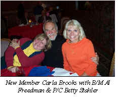 If you know of anyone who has been ill, please contact Fleet Surgeon Sharon Rebbel on rebsraft@comcast.net so she can send a card and we can post the information in the Scuttlebutt! Bull & Oyster Roast The MCC Annual Bull & Oyster Roast will be held on April 4, 2003. I know it’s early, but we need to begin planning efforts right away in order to have a successful and profitable Bull Roast. Remember, the Bull Roast supports the cruising events that we have scheduled for next season so it needs to turn a tidy profit. Lacking a Rear Commodore this year, I have agreed to chair this event and I would like all of us to have the best Bull Roast ever! We are asking every member to assist in selling Bull Roast and Raffle tickets. It is important for every member to participate in the success of the Bull roast! With your support and participation, we can turn this event into the Bull Roast of the season! Tickets will be available at the December meeting! Please plan on bringing a table of people to this fun event! Do your part to support our club—and have fun in the meantime! We have lots of surprises and fun ideas planned for that night, so please put this date on your calendar now! Bring your friends and help us to make this a special night in MCC History! - P/C Pamela Hunt Officer Highlight - B/M Wayne Cope Editor's Note: In an effort to familiarize members with each other, each month, the Scuttlebutt will highlight and profile either a member or an officer of the club. Be sure to say hello to them when you see them on a cruise! Wayne Cope grew up in Watkins Glen, N.Y. and served in the U.S. Navy from 1961 to 1967. In 1974, he graduated from Elmira College, then went on to a graduate degree in Human Development and Family Relations at the University of Kansas School of Psychology. His work experience includes; Sales Rep, District Sales Manager, Director of Training, Regional and Division Sales Manager, and General Manager of a Red Sox Farm team. Wayne has also owned a grocery store and subshop, and he currently works for Johns Hopkins Bayview Medical Center in the Community Psychology department as a Senior Rehabilitation Therapist. Wayne married Cathy Maletz in 1998 after meeting in a bereavement group shortly after their respective spouses died in 1995. Wayne has 6 children, and Cathy has a son, Dan, and a step-daughter. They live in Columbia, MD. Sports have been a big part of Wayne’s life as a player and coach. He has worked with players from little league to college in both baseball and basketball. Wayne has given up coaching and all other sports to pursue his love of boating. He and Cathy are also resident members of Maryland Yacht Club where they keep their 24’ Crownline. Wayne & Cathy joined Maryland Cruising Club in 2000 and Wayne volunteered to take on a Board position for the 2003-2005 Cruising Seasons. He has served on many boards from non-profits to businesses, and is looking forward to serving the members of Maryland Cruising Club as an active board member. Silent Auction, Raffles, Prize Wheel, Door Prizes I know it’s a long time until the Bull Roast in April, but if you’re a crafter and have a job and know the holidays are in there somewhere, it’s really not that long. Before you know it you will be very busy. That’s why it’s important to start working on your contributions today. For those of you who are new to the club we do fund raisers every year to build a budget large enough to conduct club business, put on charitable fundraisers and have FUN. Without your support both by selling tickets and donating items and time we cannot meet our goals. Every club member needs to be involved at the highest level they can in order to reach success. The Bull Roast in April is our biggest fundraiser; the Silent Auction, prize wheel and raffle are some of our moneymakers at our Bull Roast. For the Silent Auction, club members, businesses, etc. donate items to be auctioned off. The process is to write your name and the amount you bid on the paper beside an item (thus silent so as not to distract from the festivities). Then all evening long you get to watch your items to be sure no one has outbid you. At the appointed hour, if you are the high bidder you will get to purchase the item for your bid. Items donated can be crafts, services, gift baskets, single items, cars, gift certificates, alcohol, trips, clothing, CD’s (either kind), electronic equipment, boating stuff, etc. Anything you want to donate is appropriate!! The committee will decide if an item will bring the highest price by placing it in the Silent Auction, on the gift wheel, in the raffle basket, or as a door prize, so donate away. And don’t forget all those Christmas, Hanukkah, or Kwanzaa gifts from Aunt Millie you don’t know what to do with. Remember someone else may not have an Aunt Millie. To donate items or to volunteer your time, contact Pat Brettschneider or P/C Pam Hunt. - Pat Brettschneider The Choking Gourmet Last weekend after attending the CBYCA Board & Delegate meeting at Bush River Yacht Club, where our very own P/C Betty Stahler was installed as Vice Commodore, and Ken Bean was installed as Commodore , we drove to Philadelphia to attended Riverside Yacht Club of Pennsylvania’s Ball which was held at West End Yacht Club, in Essington, Pa. Prior to the Ball we all met at Riverside’s bar for a few drinks. The ball cost $40.00 each, and included an open bar, music and a fantastic meal; salad, appetizer, filet mignon and desert. Needless to say most of us got “wasted” (except Betty, who doesn’t like to lose control). It was a good idea that we stayed overnight. The next morning we met for breakfast, Butch Gricco (President of Harbor View Yacht Club), and his wife Barbara, their daughter, Barbara (Past Queen of the Delaware Yachtsman’s League), and Rex Beers (Commodore of the Delaware River Rats Yacht Club) and his wife Shelly. Betty and I have made so many great friends in the Philade