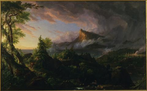 Paintings Church Heart of the Andes Cole Expulsion from the Garden of Eden Course of Empire Savage State The Arcadian or Pastoral State Consummation Desolation Destruction Voyage of Life Childhood Manhood Old Age Youth Art and Mechanical Reproduction Daguerreotype Daguerreian Society Currier and Ives Images of Whitman (w/essay) Oliver Wendell Holmes on Photography Edgar Allan Poe on The Daguerreotype Attractions Lost Museum (Barnum's Museum) Grand Moving Panorama of Pilgrim's Progress Illustrating the Text E.W. Kemble's Huck illustrations Kemble's "Illustrating Huck Finn" Henry James on Illustration Texts Emerson - The Poet