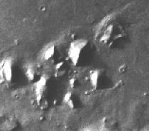 To the east of the Face there is a 3 km long cliff. Further east is a large crater with a three-sided pyramid (or tetrahedron) on the edge. Both structures are thought to be artificial. If they had been there before the meteor impacted to form the crater, they would have been damaged. Therefore, the objects were built after the crater was formed!