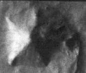 The Cydonia region photographed by Viking I in 1976. The image contains a strange bunch of formations not normally seen in nature. There layout is strange as well.