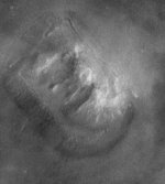 AT 2.5 km long, 2 km wide and 400 meters high, this huge structure has detaild facial features that appear to have been eroded over the years. The mouth and eyes and border are still cleary defined even after millions of years of wind erosion.