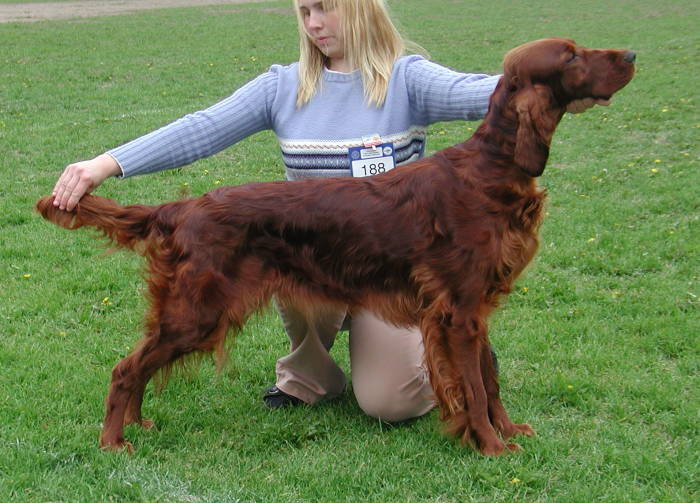 Well at 4,5 months old Indi has gone to her first show and was a big success winning BOB at the Estonian Special Christmas Puppy show from an extry of about 20 Irish Setters from 4 months to 1 year old. She also became Best Puppy Bitch at the Estonian Club Show in 2000.