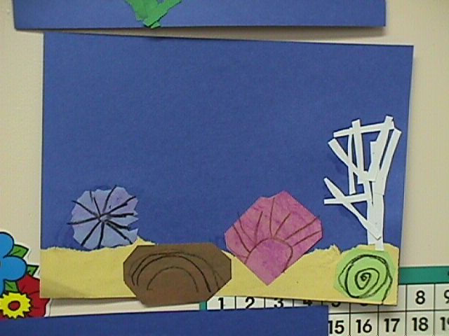 background with green seaweed at the bottom. Then, we inked