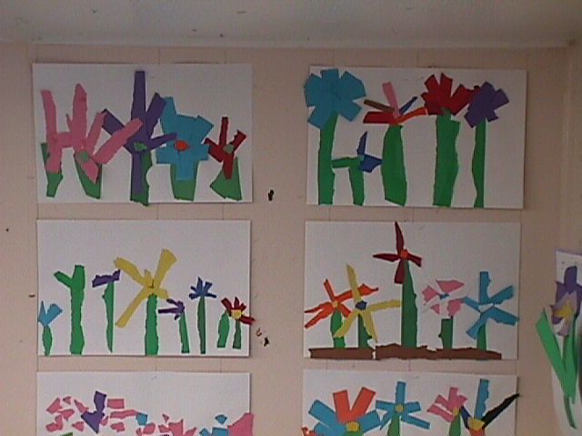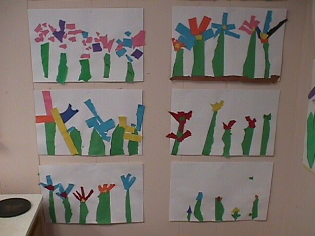 and tear them into stems and flower shapes.